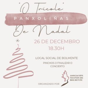 O Trícole organiza un Nadal de música tradicional no Centro Sociocultural de Sober. O 20/12/25 ás 18:00h As Xeitosiñas de Baltar e o 28/12/25 ás 18:00h @s Folieiras de Lavadores