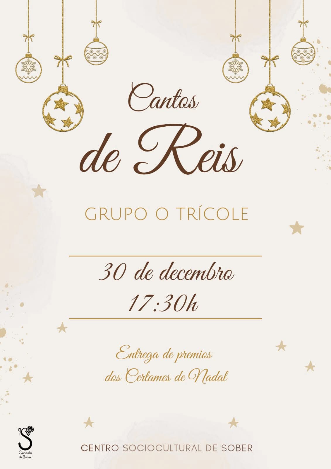 Cantos de Reis co Trícole no Centro Sociocultural de Sober na entrega de premios Certames de Nadal o martes 30/12/25 ás 17:30 h